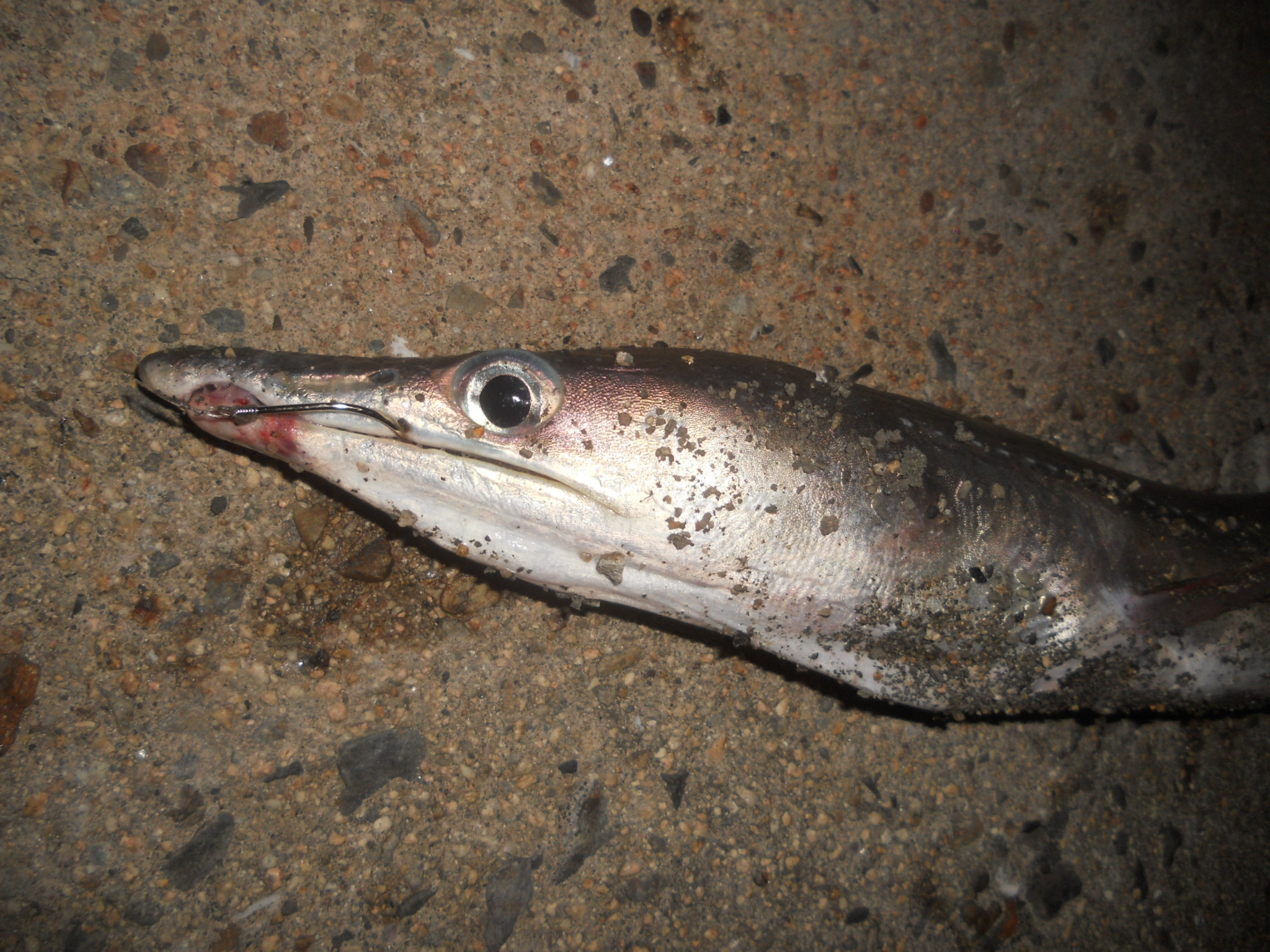 この日も一気に竿尻の浮くアカエイのアタリがあり、あわせた瞬間力強い引きがあったが